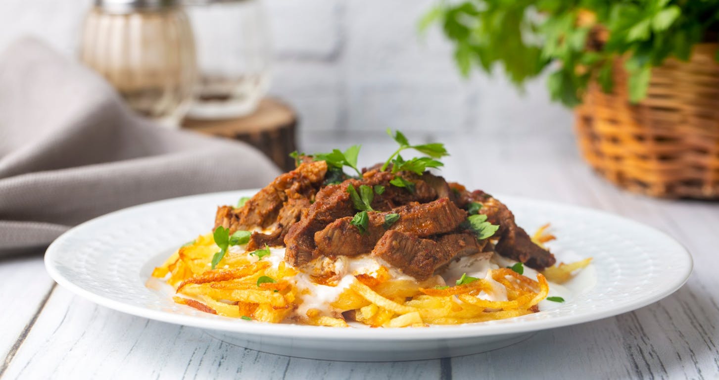 Doner Kubek Classicmięso 120g, frytki, warzywa, sos